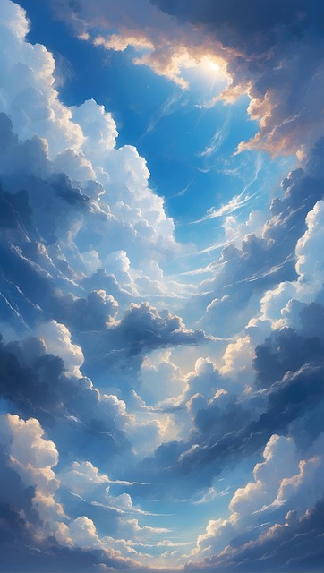 "지브리 스타일로 영감을 받은 신비로운 장면을 만들어 주세요. 구불구불한 언덕과 포근한 구름, 그리고 부드러운 바람이 불고 있습니다."