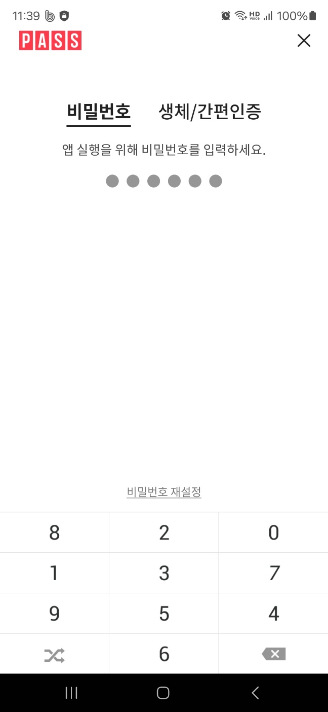 - 스마트폰에 PASS 앱 설치 및 실행 구글 플레이스토어 또는 앱스토어에서 ‘PASS’ 앱을 다운로드