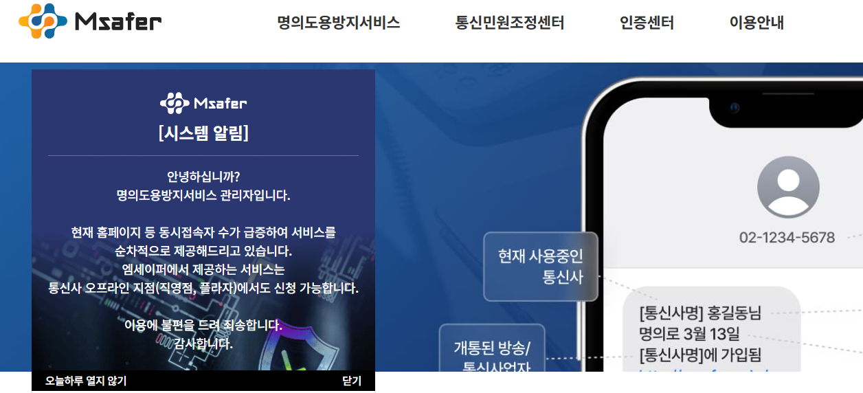 - Msafer 명의도용방지서비스 홈페이지 👉접속하기