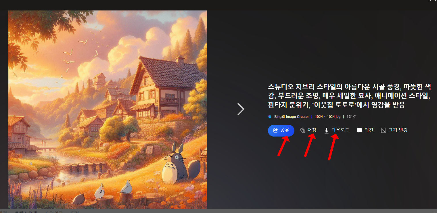 AI가 알아듣기 쉽게 지브리풍 스타일을 설명해야 원하는 결과를 얻을 수 있어요.